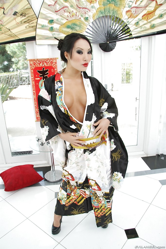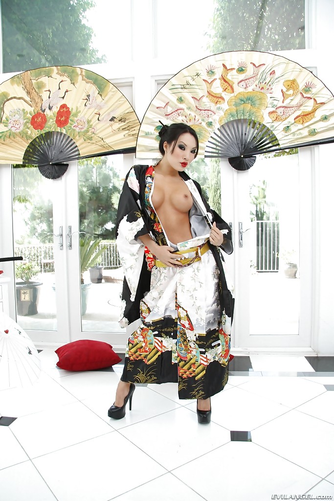 Азиатская шалунья Аса Акира снимает свое кимоно и обнажает свою соблазнительную пизду