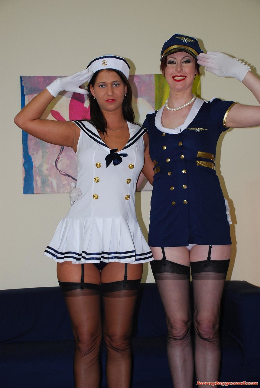 Британские лесбиянки отдают честь в своей униформе перед тем, как заняться сексом на диване
