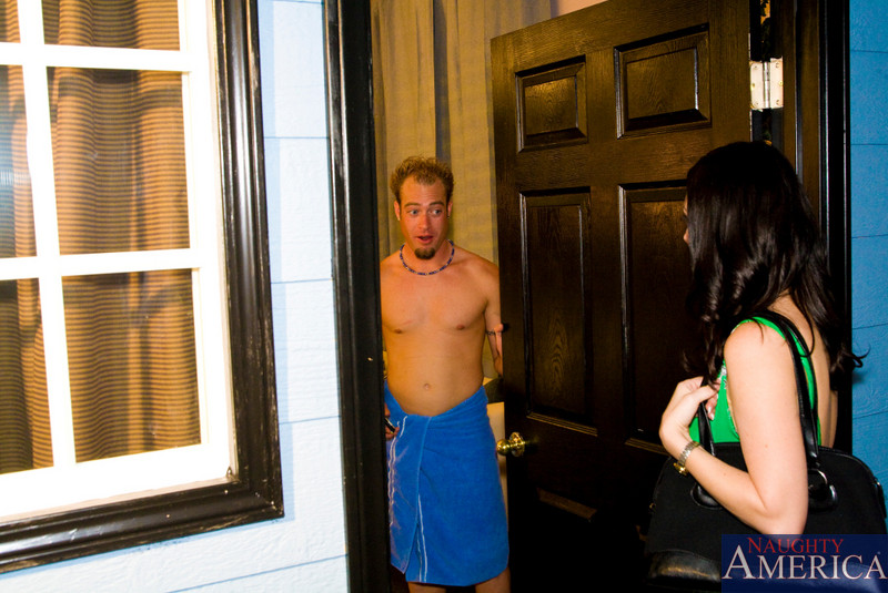 Брюнетка-пума Рэйвенс соблазняет молодого человека, будучи одетой в платье