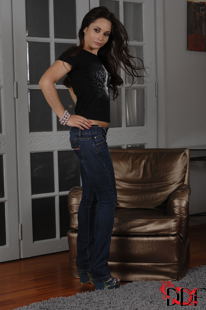 Черноволосая соло-девушка Аурелли Ребел погружает палец глубоко в свое влагалище