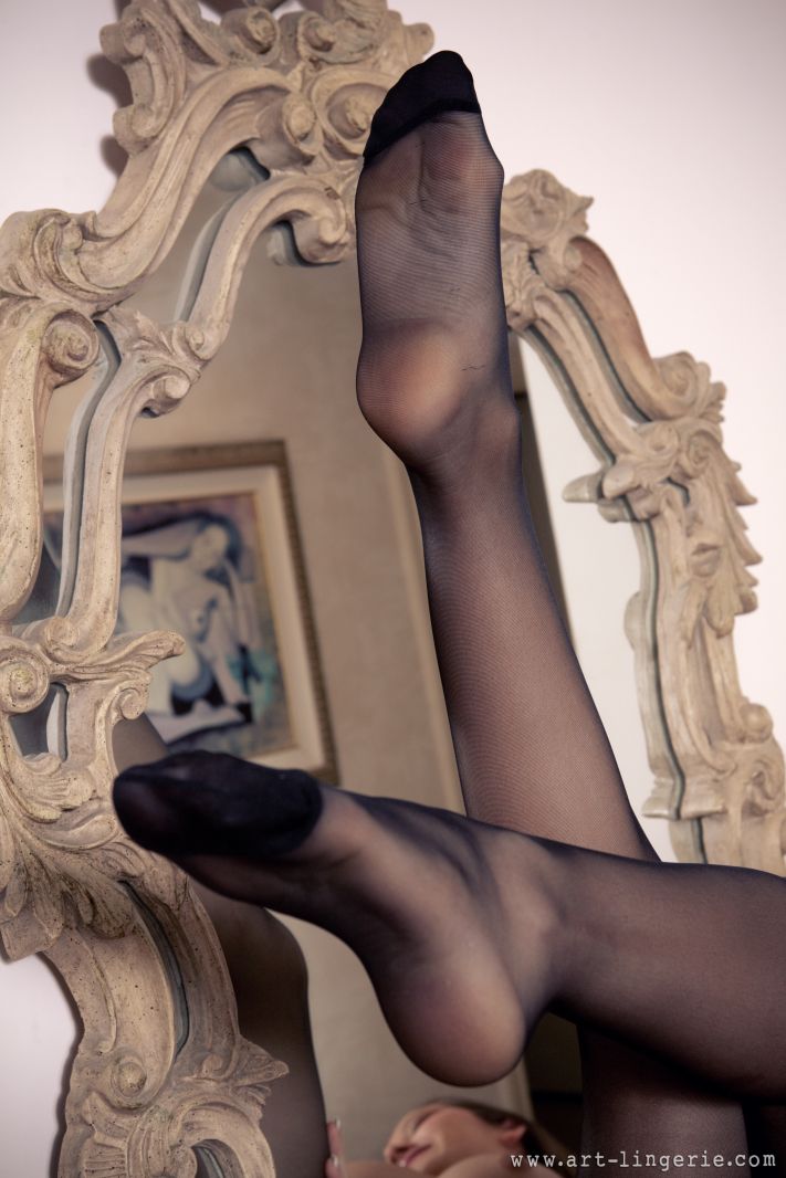 Девушка-одиночка Дэни Дэниелс покачивает своей обтянутой стрингами попкой перед зеркалом в туалетном столике