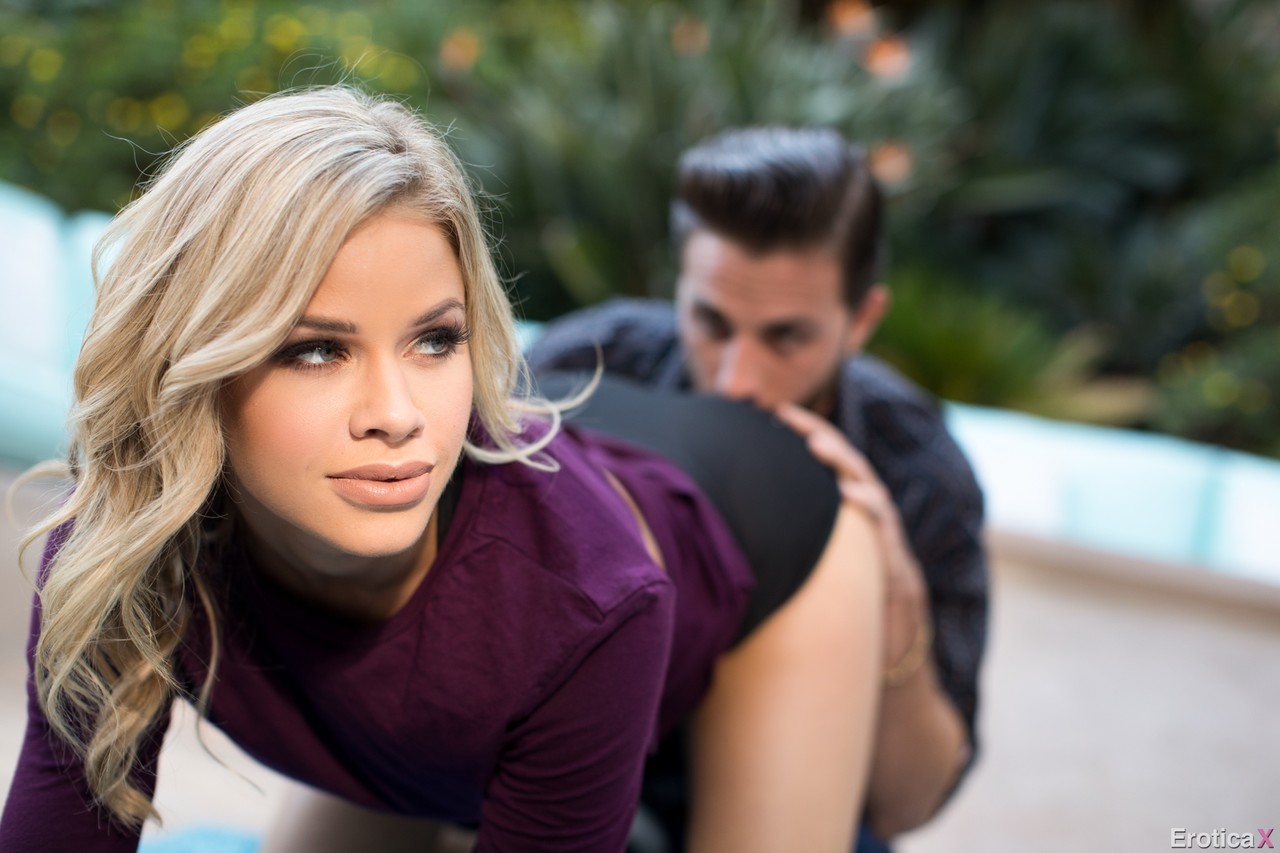 Горячая блондинка Джесса Роудс трахается со своим мужчиной после занятия йогой на открытом воздухе