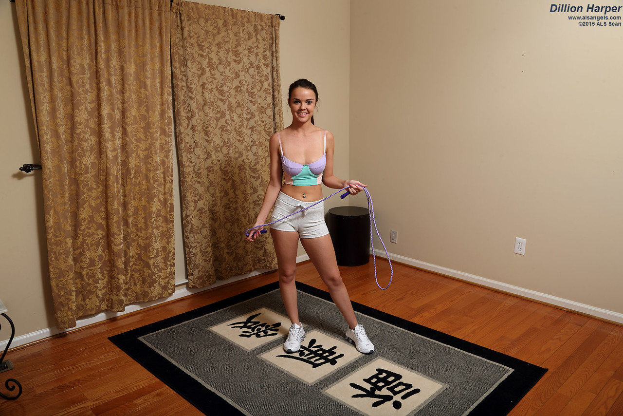 Горячая молодая любительница Диллион Харпер играет со своей скакалкой и сжимает себя в кулаках