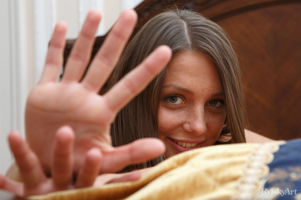 Горячая молоденькая Фокси Ди лежит голая на своей кровати, выставив свою пухлую киску на всеобщее обозрение