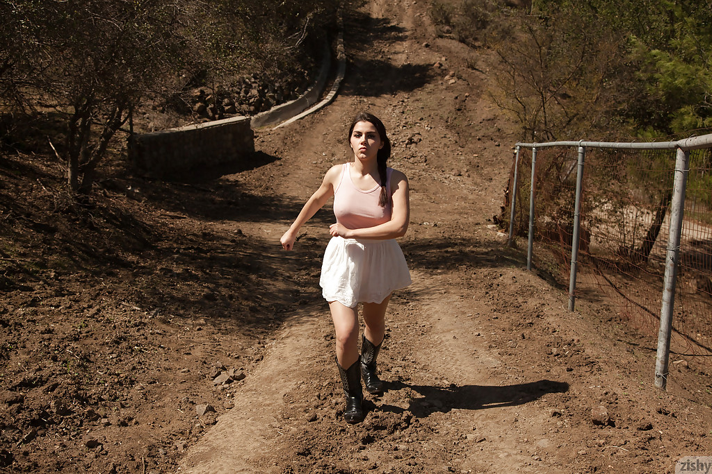 Грациозная брюнетка-бомба Валентина Наппи развлекается на ферме