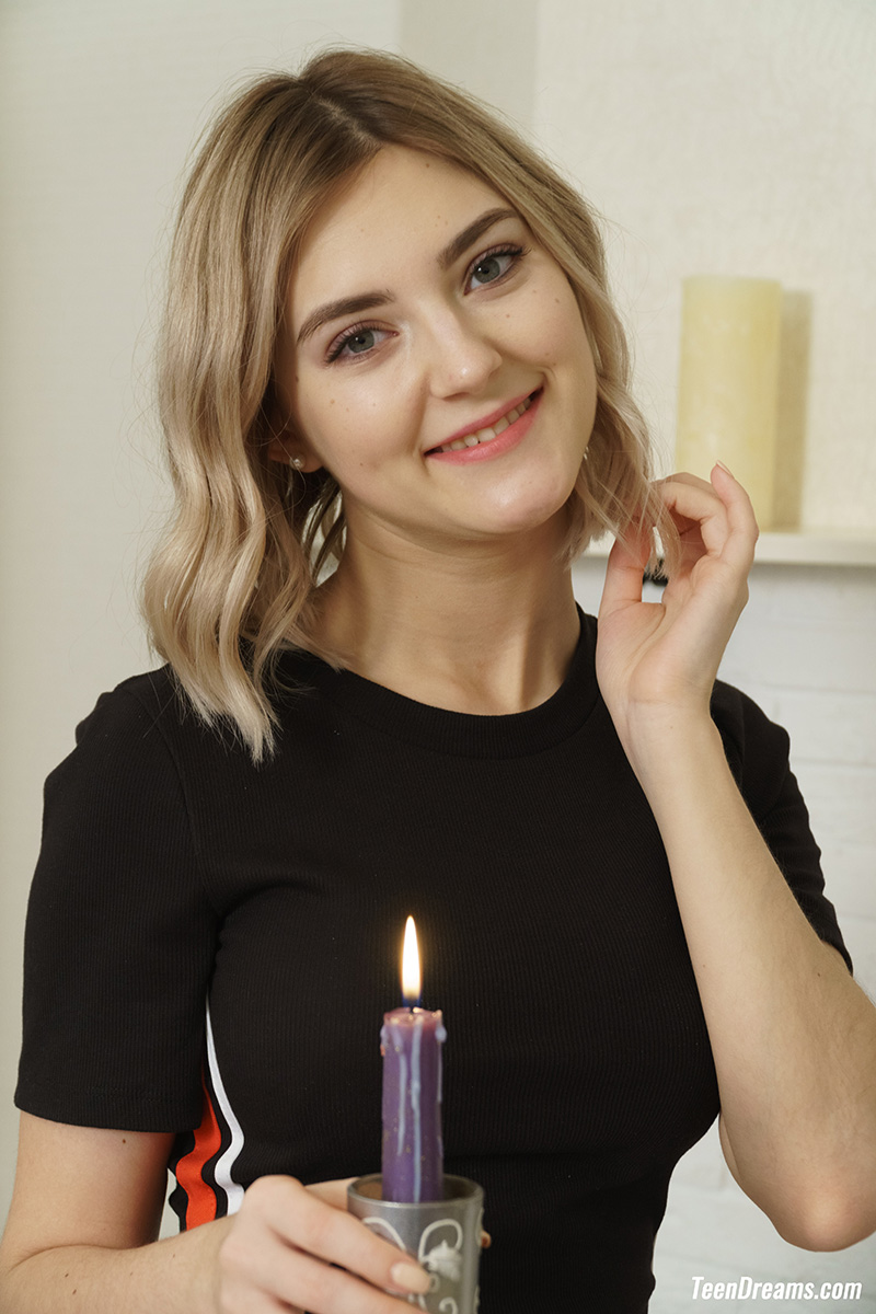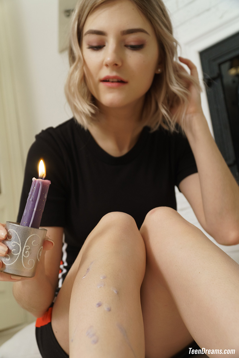 Грудастая первокурсница играет со свечным воском перед трахом пальцами в обнаженном виде