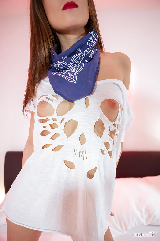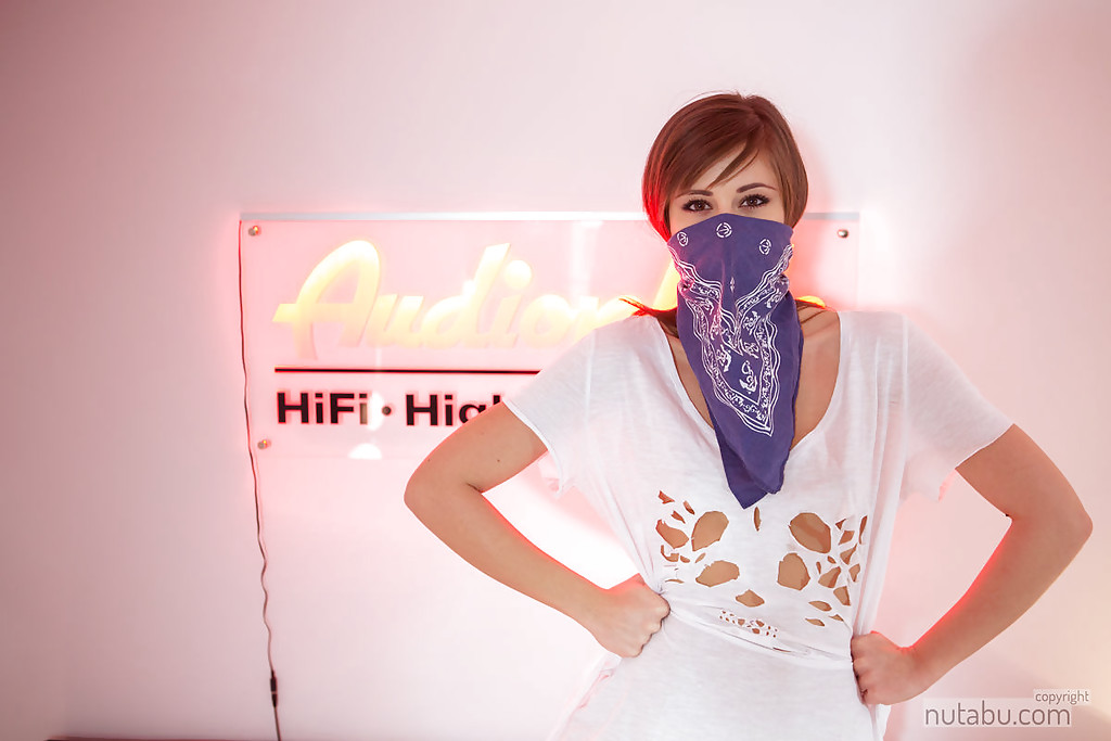 Любительская цыпочка в маске раздвигает красивую киску для домашних фото мастурбации