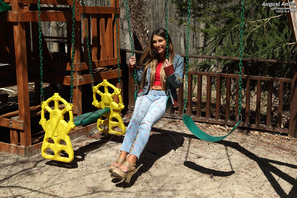 Любительская девушка Августа Эймс обнажает свои красивые сиськи, прежде чем растянуть свои половые губки