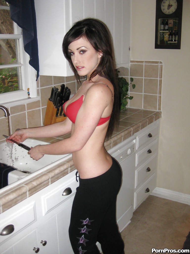 Любительская молоденькая красотка Дженнифер Уайт показывает свои большие сиськи и киску