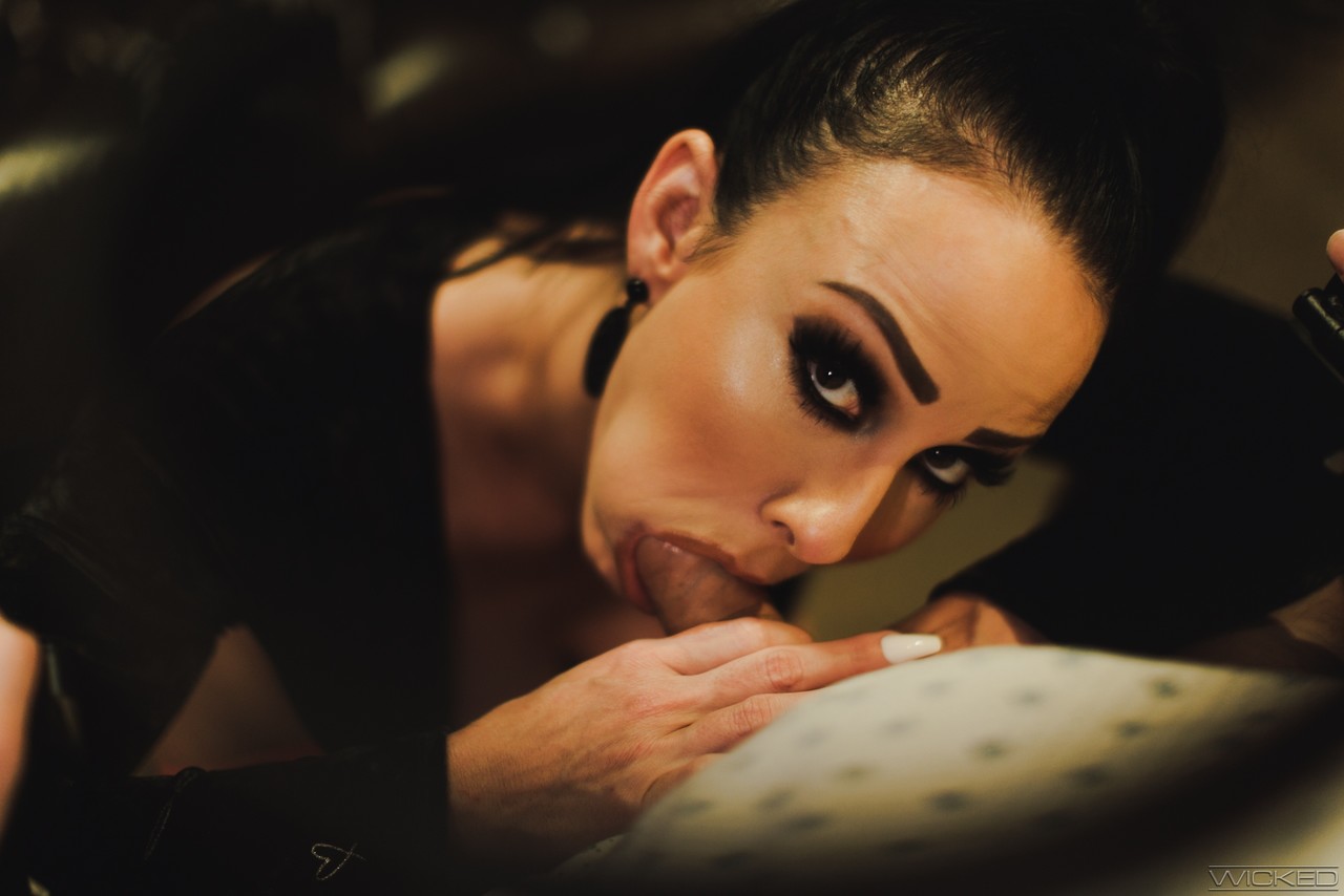 Милфа брюнетка Дженнифер Уайт занимается жестким сексом на кожаном пуфике