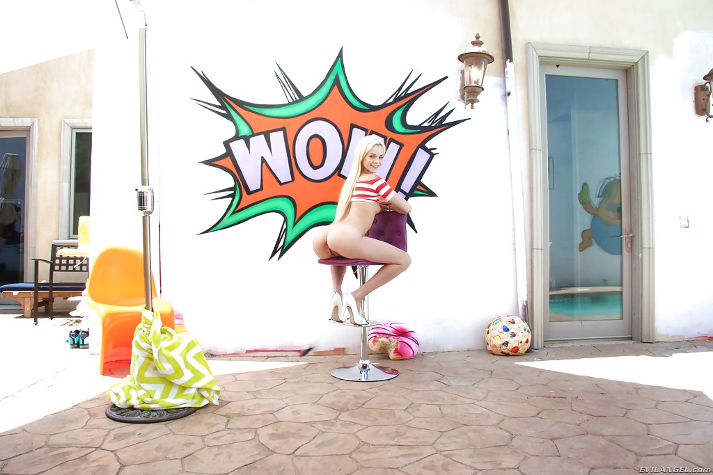 Молодая порнозвезда Эльза Джин демонстрирует загнутые назад половые губы после того, как сняла шорты