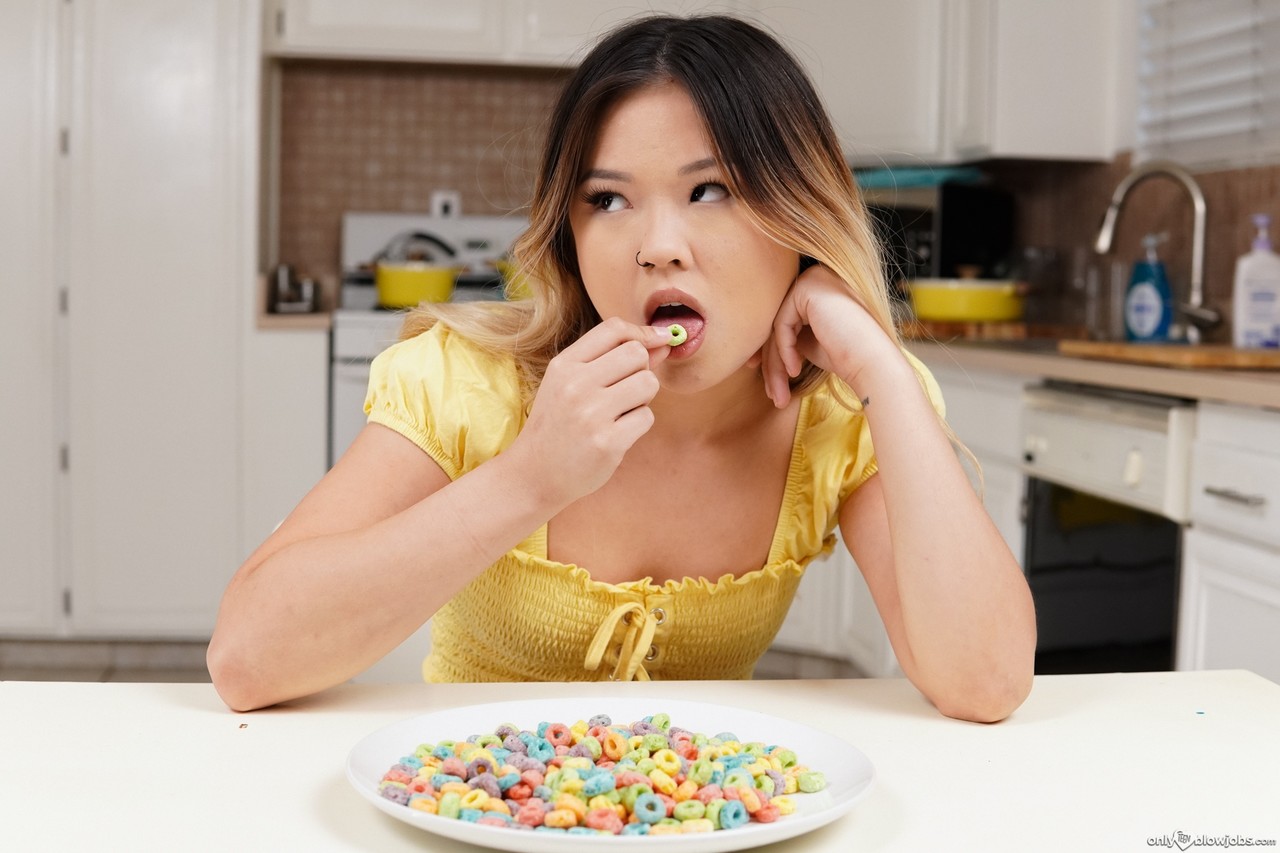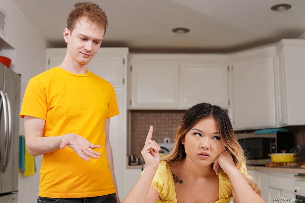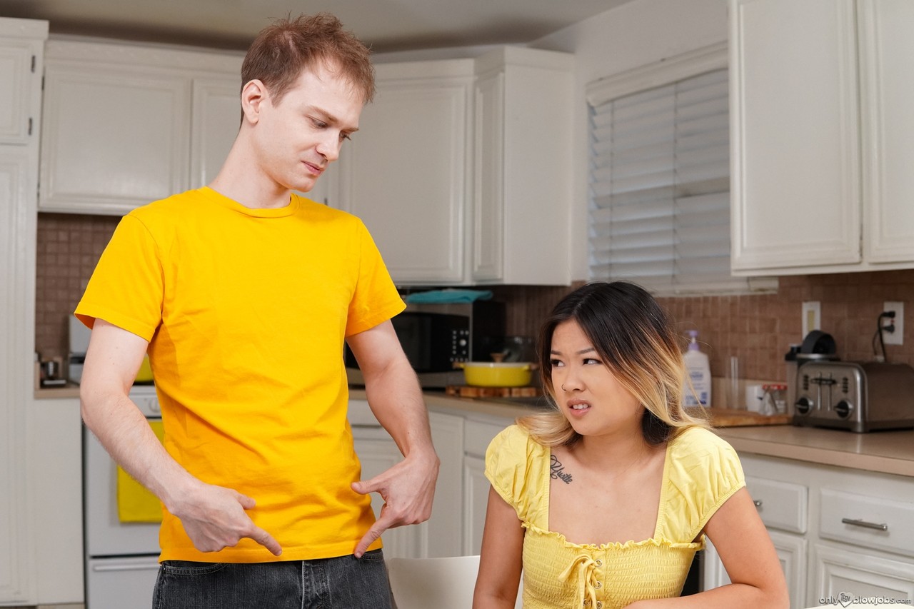 Молоденькая азиатка Лулу Чу обнажает свою шикарную задницу перед тем, как отсосать у своего сводного брата