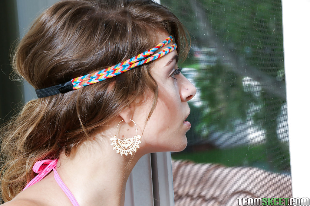 Молоденькая блондинка Кимми Грейнджер моделирует соло в ярком бикини
