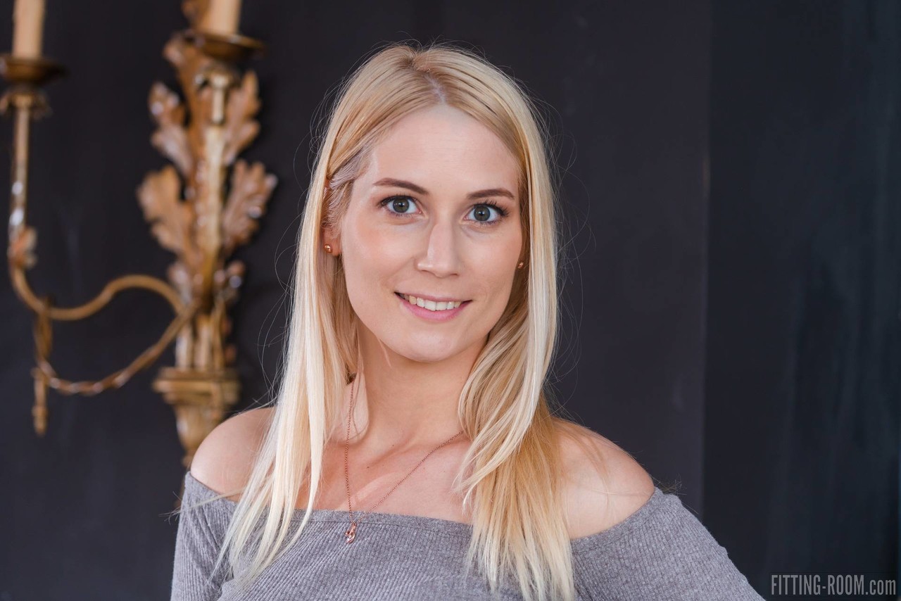 Молоденькая блондинка Шэрон Уайт обнажает свою сексуальную попку перед мастурбацией