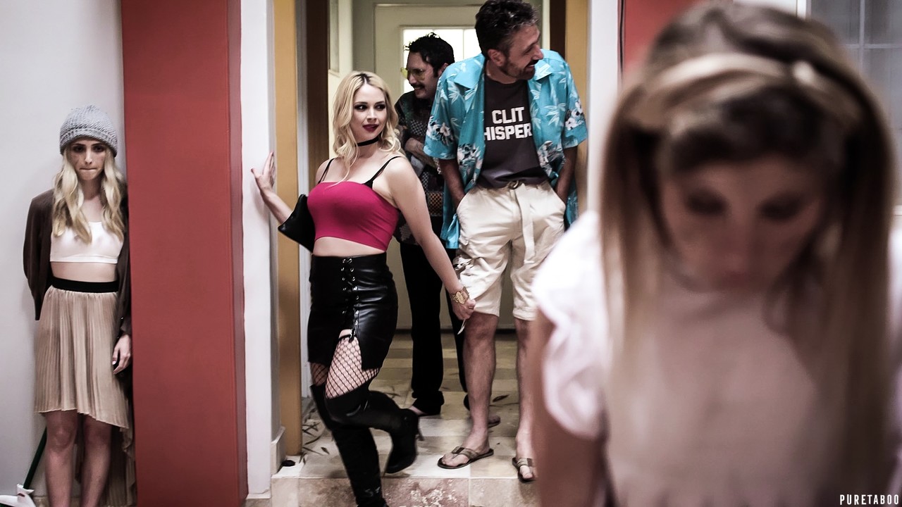 Молодые девушки участвуют в групповом сексе с родственными членами семьи