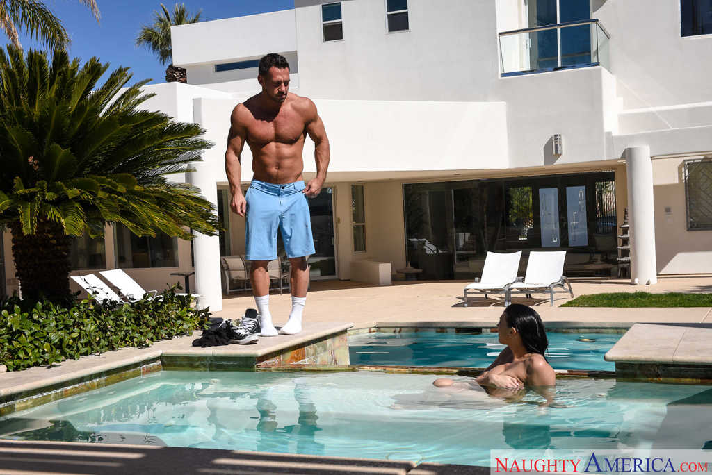 Обнаженная жена Рэйчел Старр соблазняет своего мужа во время купания в бассейне