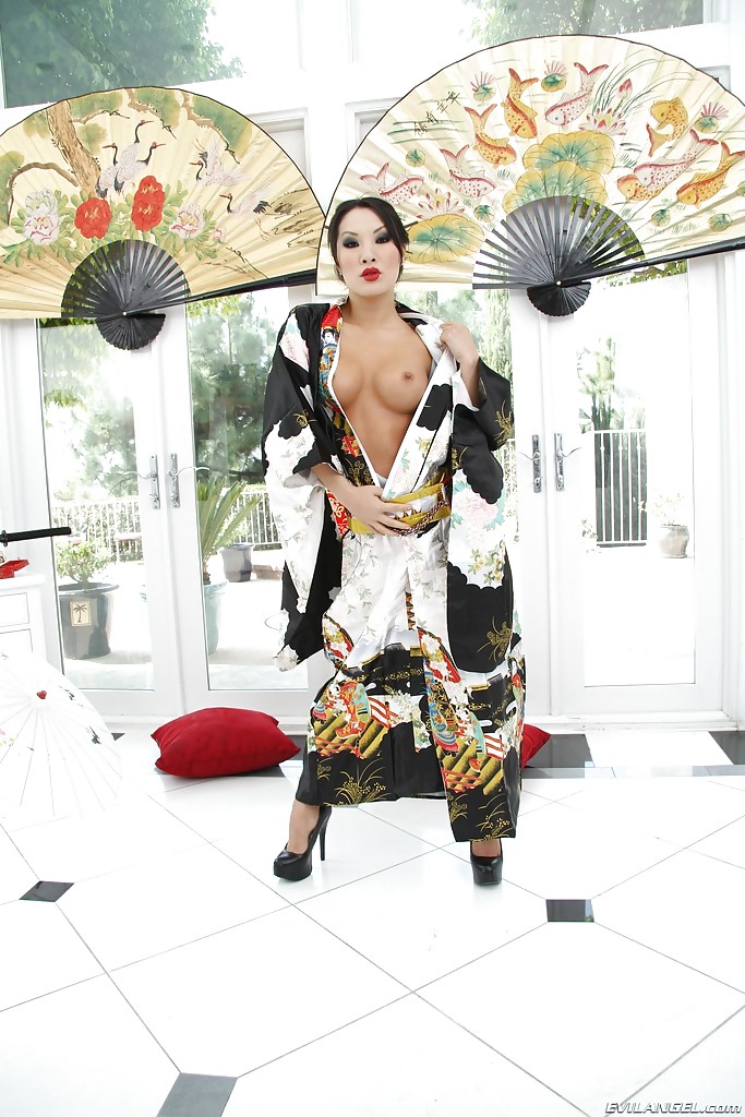 Очаровательная азиатская милфа на высоких каблуках демонстрирует свои великолепные изгибы