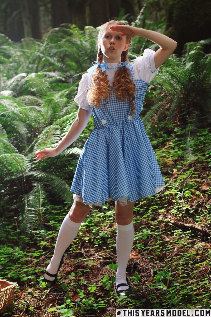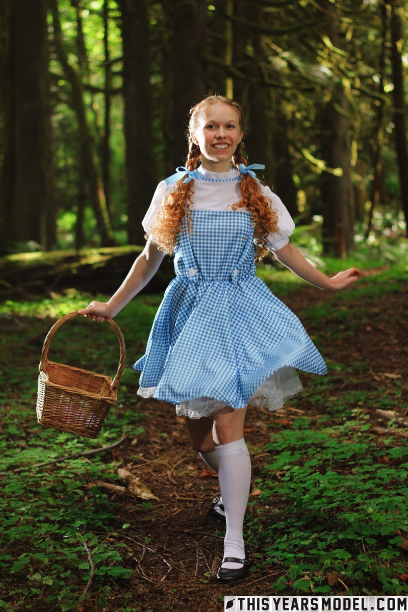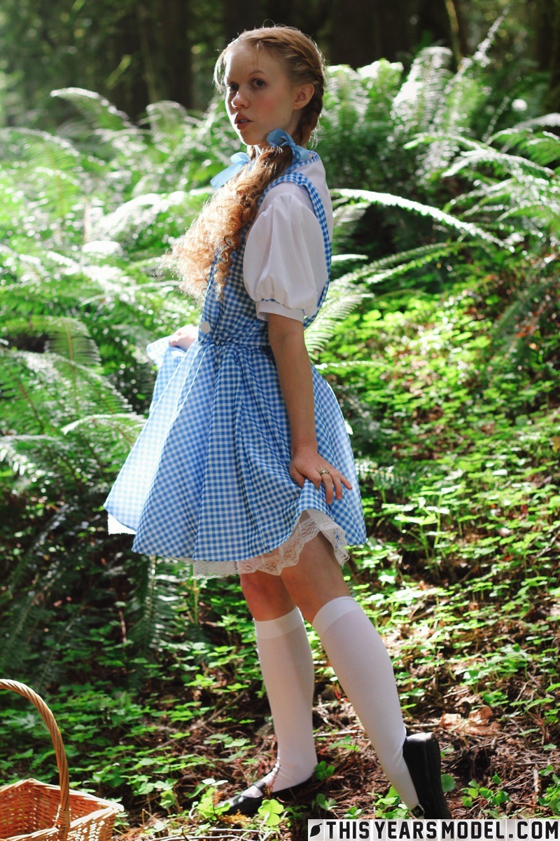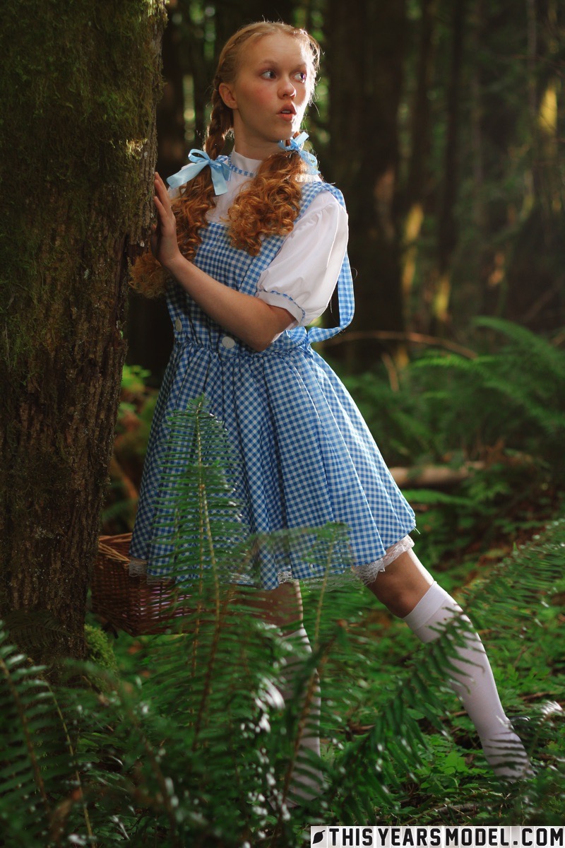 Очаровательная рыжеволосая молоденькая Долли Литтл раздевается догола в белых носочках в лесу