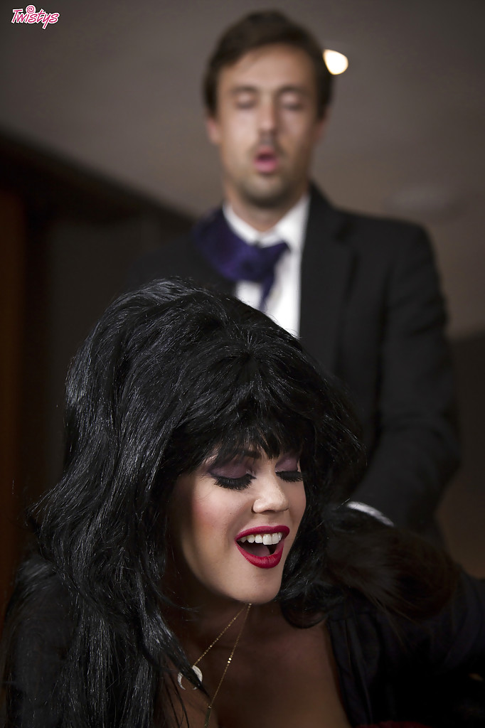 Пышногрудую порнозвезду Элисон Тайлер трахает в волосатую пизду большой член в нейлоновых чулках