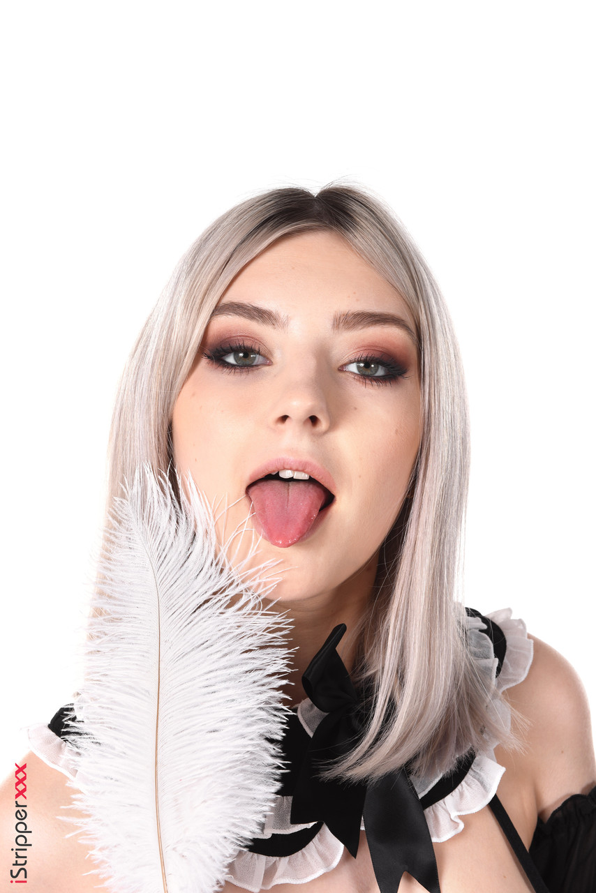 Платиновая блондинка горничная Ева Элфи вставляет вибратор в свою возбужденную вагину