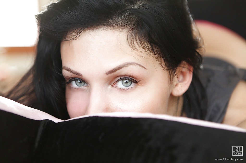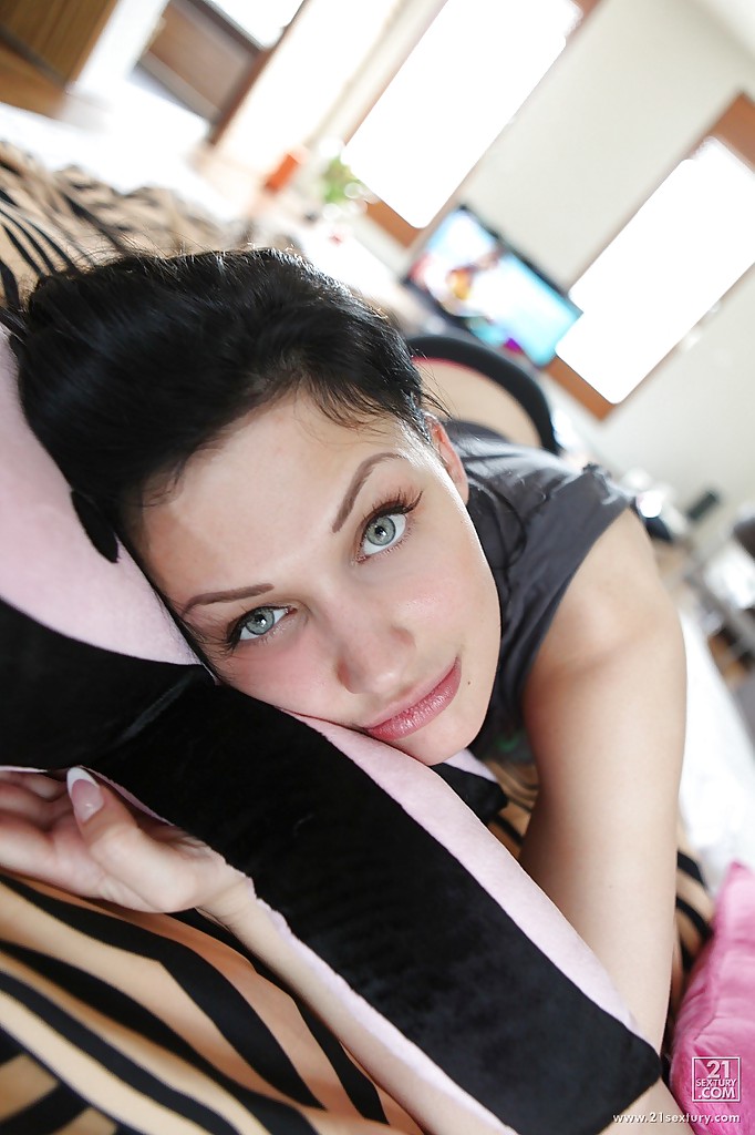 Порнозвезда с длинными ногами Алетта Оушен лежит на своей кровати