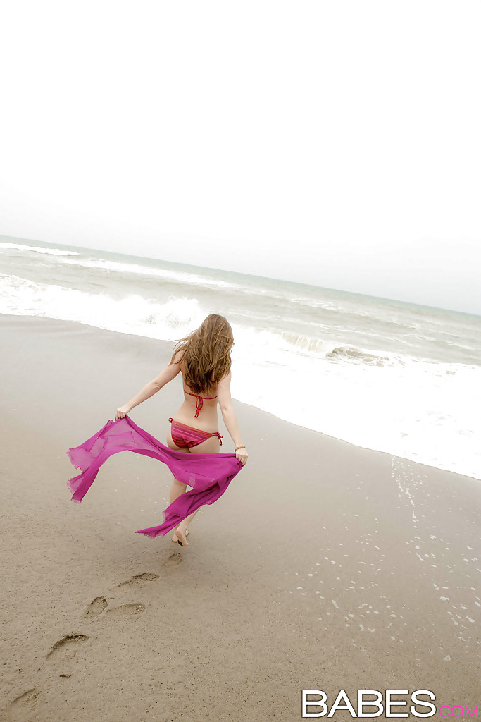 Потрясающая мокрая красотка Реми показывает свое красивое тело на пляже