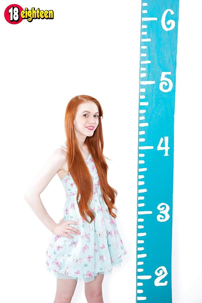 Рыжеволосая молодая соло-девушка Долли Литтл раздвигает киску после снятия трусиков