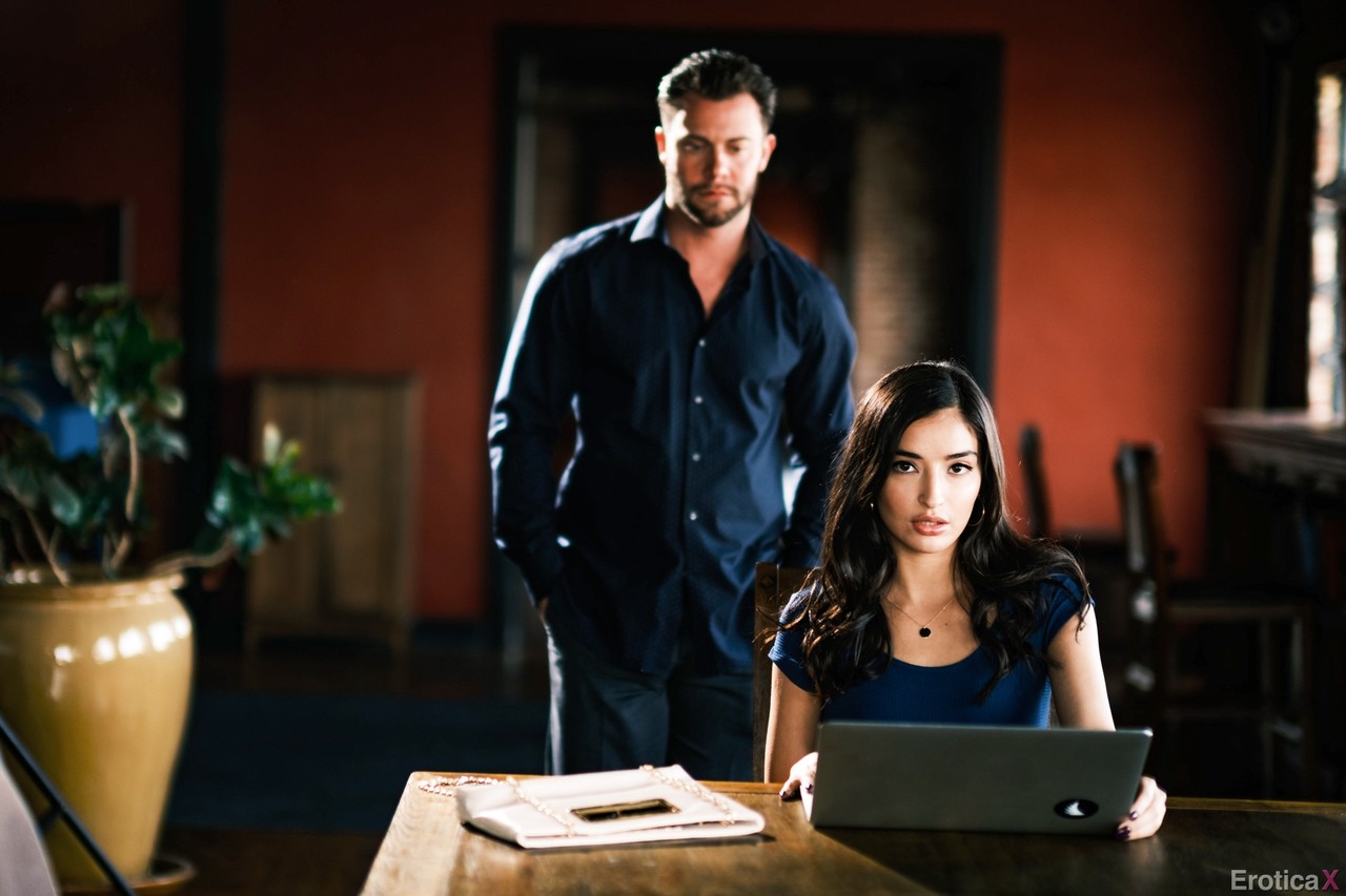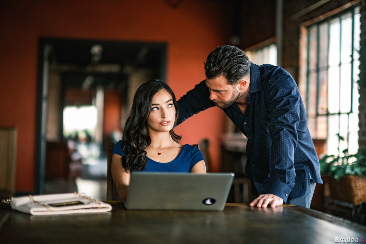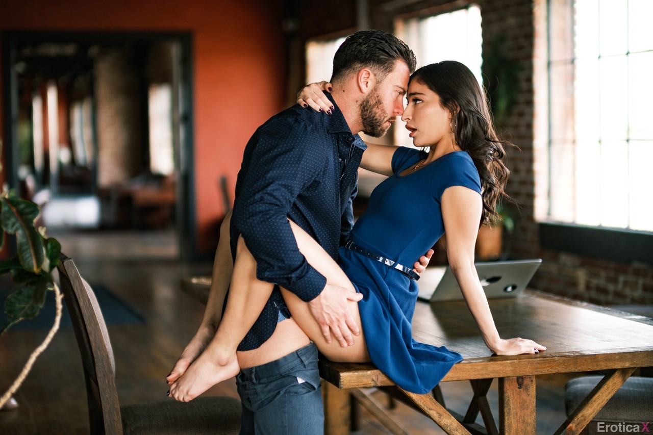 Сексуальная девушка и ее друг-мужчина принимают участие в жестком трахе на столе