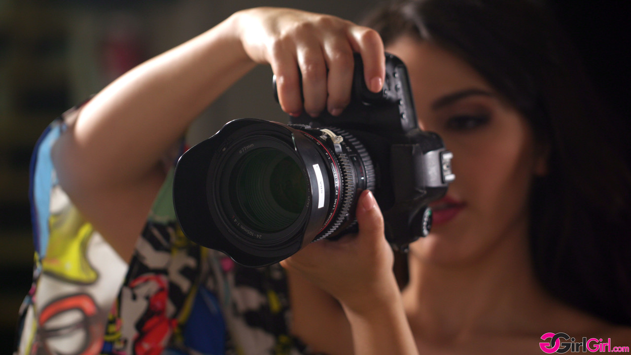 Сексуальные девушки занимаются лесбийским сексом втроем во время фотосессии