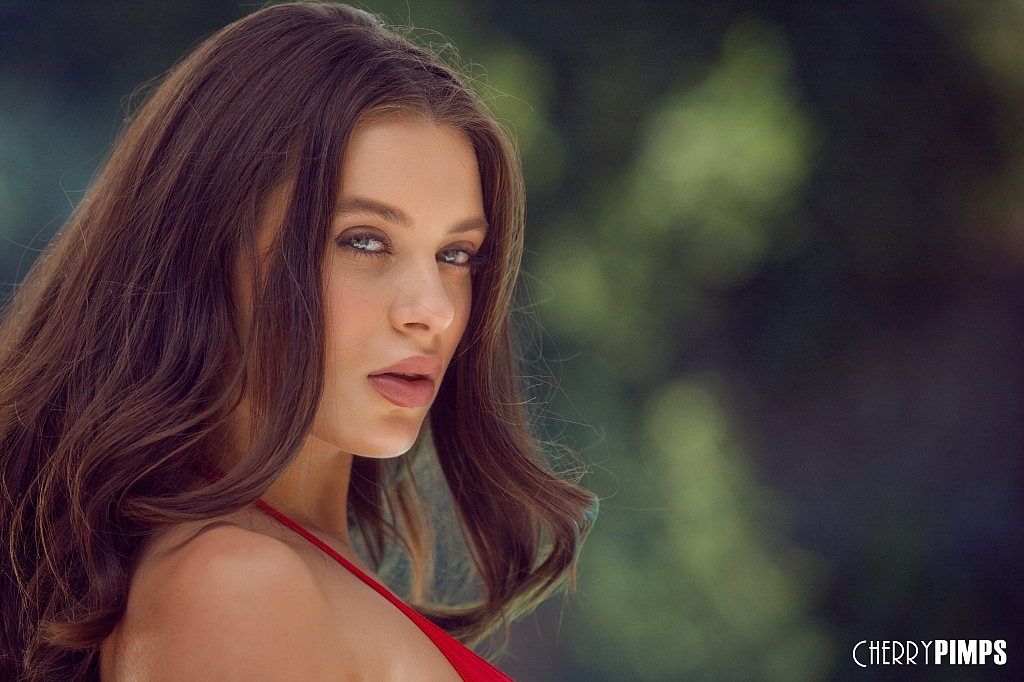 Сольная модель Лана Роудс снимает свой пляжный наряд рядом с бассейном