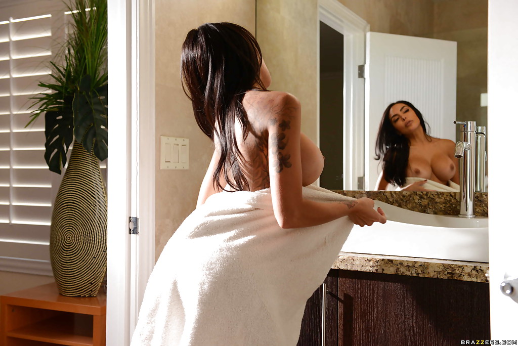 Татуированная брюнетка Лела Стар принимает горячую ванну абсолютно голой