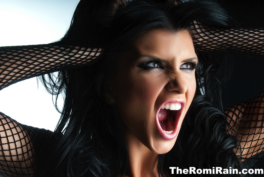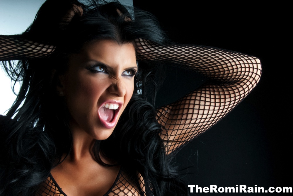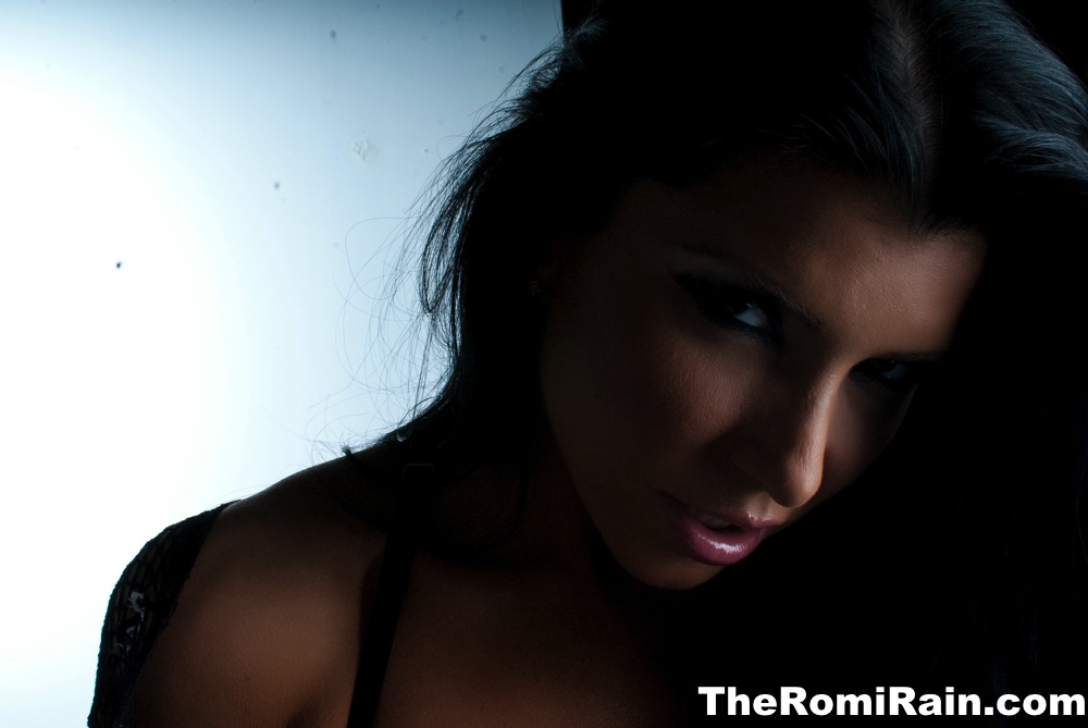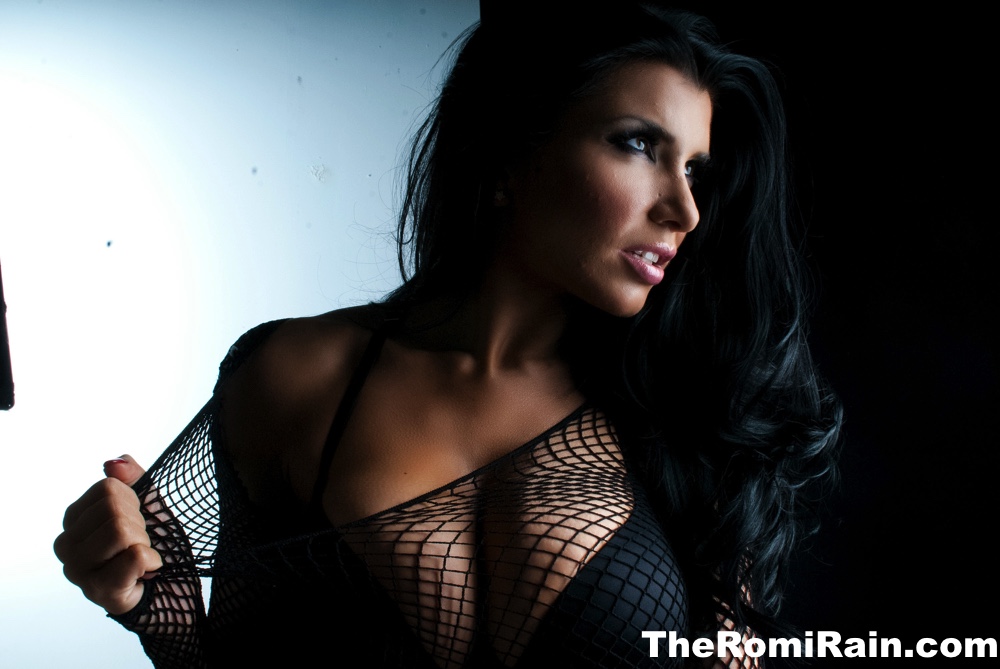 Темноволосая милфа Роми Рейн снимает шорты с попой во время сольного действия