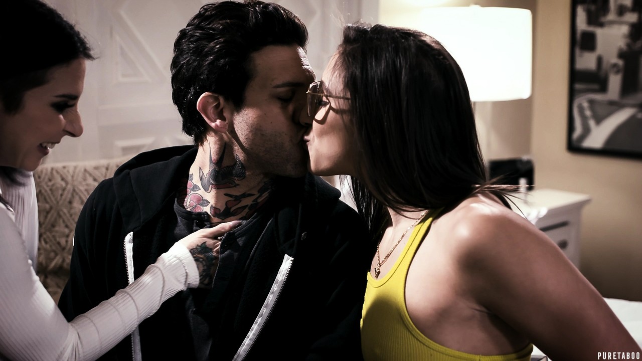 Три девушки доставляют удовольствие друг другу, когда их не трахает их приятель