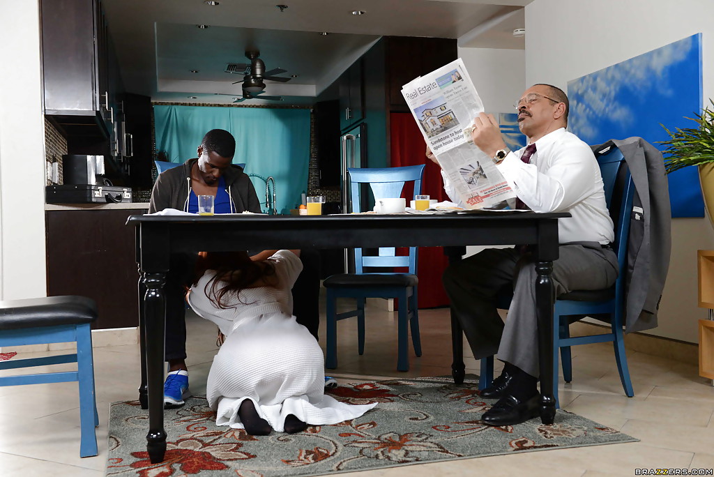 В межрасовом сексе участвует милфа-пума с большими сиськами Джанет Мейсон