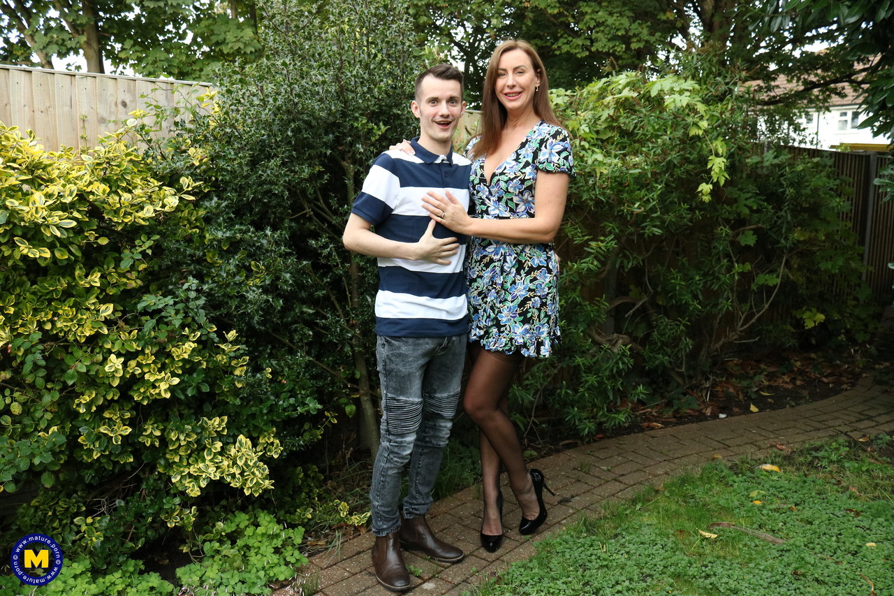 Возбужденная пума приводит молодого жеребца домой и трахает его в чулках на диване