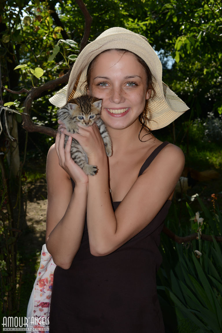 Юная легалистка снимает с себя одежду и позирует обнаженной на надувном матрасе