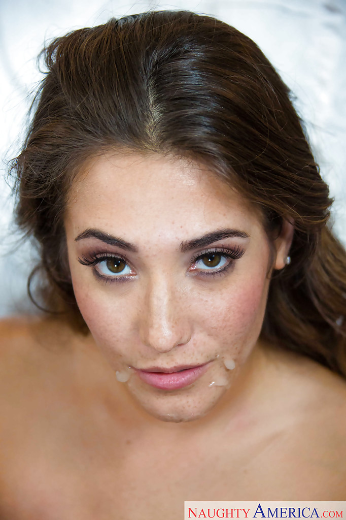 Загорелая мамаша Ева Ловия получает сперму на лицо после поцелуя с этим членом