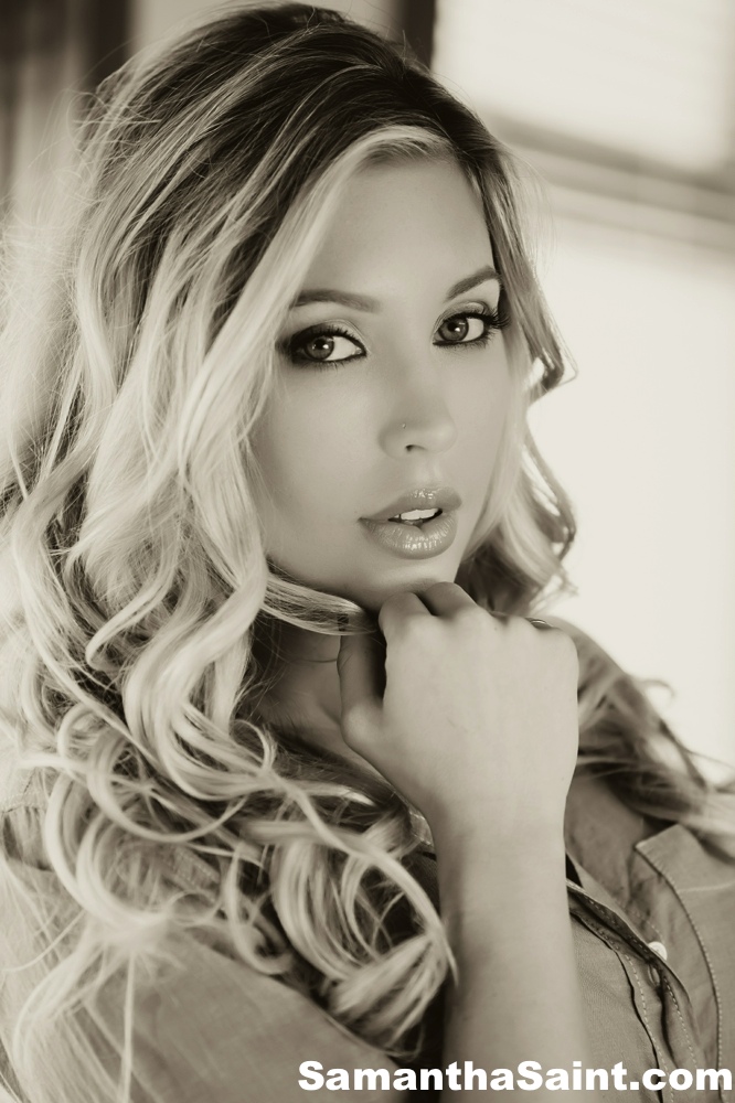 Знаменитая порнозвезда Саманта Сент демонстрирует свое красивое личико во время соло-моделирования